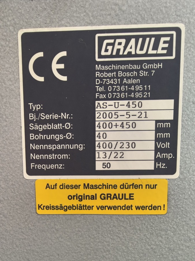 PIŁA FASADOWA GRAULE AS-U 450 ROK 2005 PIŁA FASADOWA GRAULE AS-U 450 ROK 2005 1367 A.U. Cena DO UZGODNIENIA