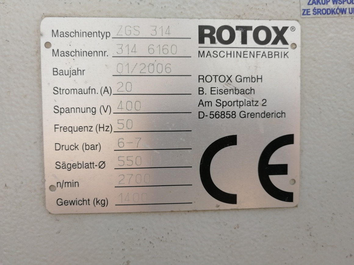 • PIŁA AUTOMATYCZNA DWUGŁOWICOWA  ROTOX ZGS 314  ROK 2006