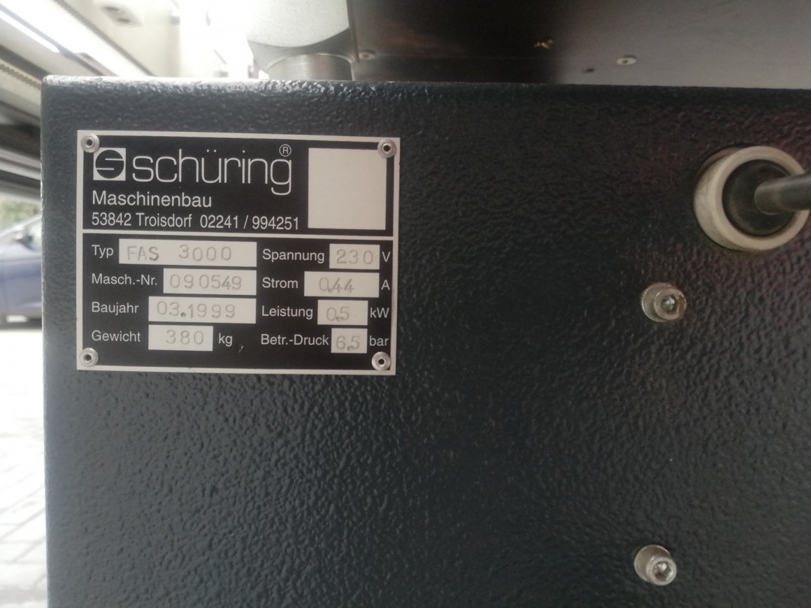 STÓŁ DO UKUWANIA SCHURING FAS 3000 + SF 3000 + BE-ST-40 ROK 1999