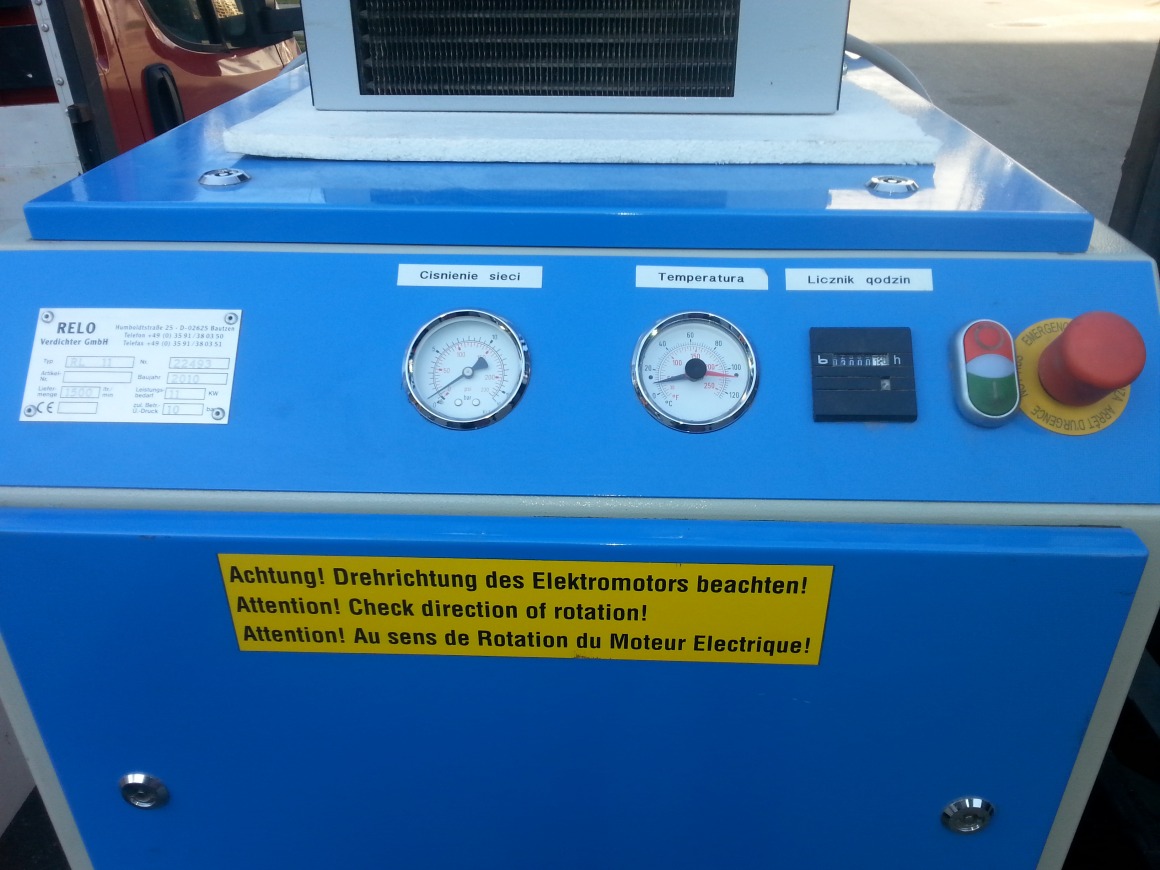 SPRĘŻARKA ŚRUBOWA RELO RL 11 10 ZE ZBIORNIKIEM POWIETRZA 500 L I OSUSZACZEM POWIETRZA CPX 60 ROK 2010
