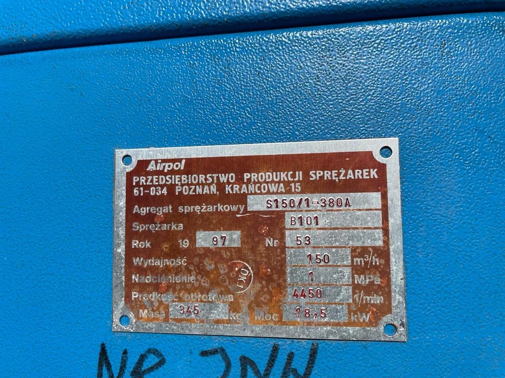 KOMPRESOR ŚRUBOWY AIRPOL S150/1 KOMPRESOR ŚRUBOWY AIRPOL S150/1 ROK 1997 815 K.L Cena DO UZGODNIENIA sprzedane